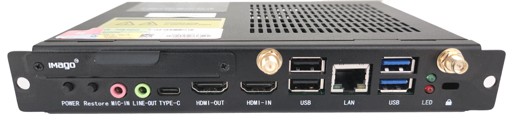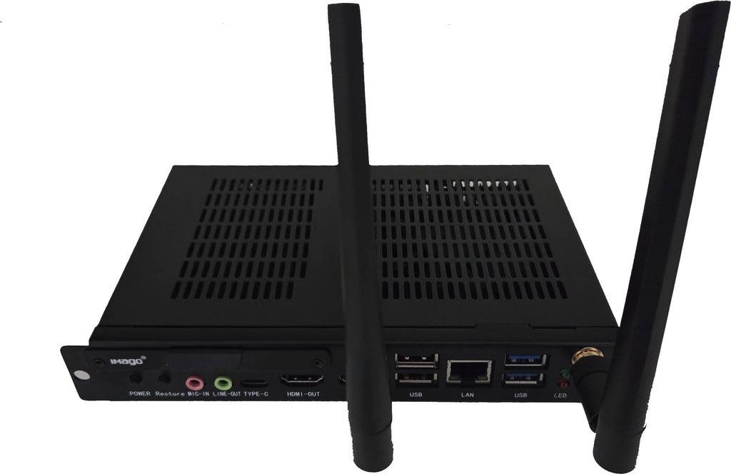 Ottieni di più e sfrutta al meglio i tuoi Display Interattivi IMAGO tramite un OPS PC slot-in dedicato con Windows. Progettato con un processore ad alte prestazioni Intel, fino a 8GB di memoria DDR4 e fino a 128GB di archiviazione SSD, grazie ad una maggiore potenza di calcolo, potrai svolgere lezioni complesse e migliorare la collaborazione. Aumenta la tua produttività con le flessibili opzioni di connettività wireless WiFi dual-band, Bluetooth 5 e alla gamma di connessioni HDMI 4K USB 3.1, e Gigabit LAN RJ45 per una maggiore velocità di lavoro.?
