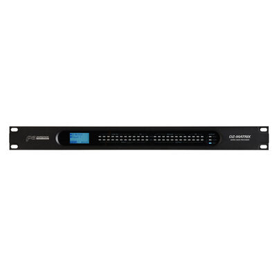 12 x 12 digital matrix (8 x 8 analog + 4 x 4 remote) controllable via software with possibility to add 8 digital inputs / outputs and connect up to 16 matrices via the optional Dante card. The software makes it possible to assign all inputs and outputs and to process the signal according to the requirements of the system. The IOS and Android compatible App provides access to all essential settings on smartphones and tablets. The numerous network possibilities and the Dante option make it suitable for installations in shopping centres restaurants hotels museums conference rooms wherever the number of inputs and broadcast zones require precise parameterisation. Rear panel INPUT: Euroblock connector with 8 balanced analog inputs OUTPUT: Euroblock connector with 8 balanced analog outputs LAN: port for Ethernet connection 10/100 M adaptive with DHCP function GPI: this function is used to control the input / output / mute priority of all channel 1-8 outputs ON/OFF switch: enable or disable the Ethernet port RD 9/10 11/12: RD ports for connecting a remote control accessory such as DZ-BOX22 DZ-CTL DZ-CTL2OUT DZ-EXPAND and DZ-MICDESK. These ports transmit and receive AES3 digital audio and control data Relay: dry contacts whose ON/OFF status can be controlled individually in the "SYSTEM" menu. They are generally used as switches for third party electrical equipment. Attention: 24 VDC control current: less than 500 mA RS232: this interface is used to remotely control DZ-MATRIX parameters such as changing a preset or changing the gain of a channel Software The software allows you to manage all inputs and outputs and make all settings on the channels: input DSP settings matrix output DSP priority feedback suppressor auto mix presets backup link stereo inputs or outputs etc. DSP CHANNEL: control of inputs with adjustments of levels EQ compression filters Phantom power etc. DUCKER: priority control allows you to select the priority channels and on which they act. Setting independent trigger thresholds on all outputs MATRIX: control of the matrix with assignment of inputs and outputs. Note: channels 01 to 08 are Dante channels accessible only when the DZ-DANTE card (optional) is active FBB: Feedback control with choice of inputs and outputs. The adjustment of the static or dynamic 24-point filter is done automatically SAVE / LOAD / COPY - allows you to manage backups in the matrix or on your computer. It allows to save in the form of presets the states of the matrix with all the settings to import or export them. You can also copy the settings of one channel to another AUTO MIXER: automatically controls the gains of multiple microphones in real time reducing feedback noise and comb filtering from nearby microphones. It maintains constant system gain and crossfades perfectly without any signal compression SYSTEM: allows you to act on dry contacts restore the matrix default settings modify the matrix name manage GPI 1 and 2 manage the password DEVICE INFO: allows you to view all the information of the peripherals connected to the matrix MOBILE APP: the DZ-Control App compatible with iOS and Android allows you to control the matrix from your smartphone or tablet.