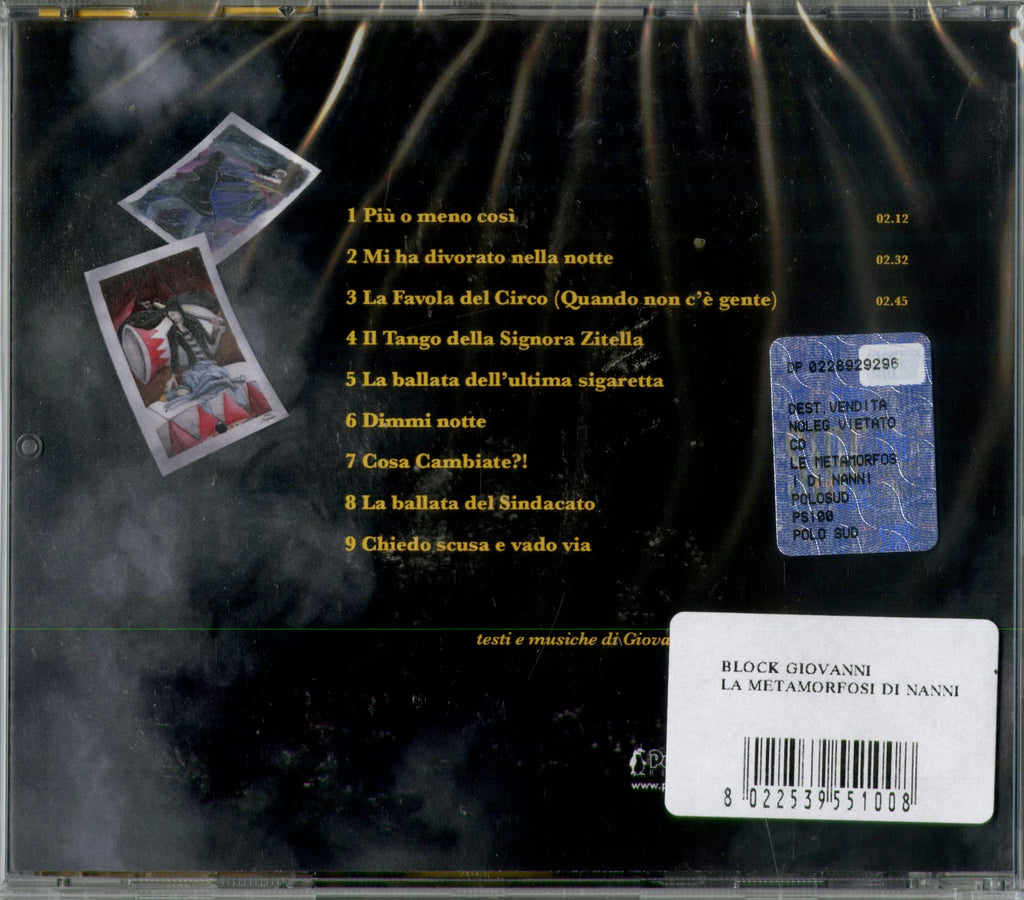Il tuo cd di / your cd of : Block Giovanni - La Metamorfosi Di Nanni Cd 8022539551008 sarà spedito e consegnato in 24/48h in Italia 48/72 in Europa / will be shipped and delivered in 24 / 48h in Italy 48/72 in Europe