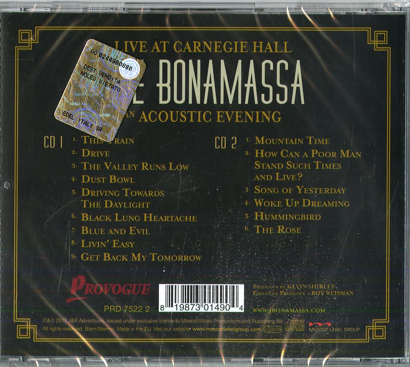 Il tuo cd di / your cd of : Bonamassa Joe - Live At Carnegie Hall An Acoustic Evening Cd 0819873014904 sarà spedito e consegnato in 24/48h in Italia 48/72 in Europa / will be shipped and delivered in 24 / 48h in Italy 48/72 in Europe