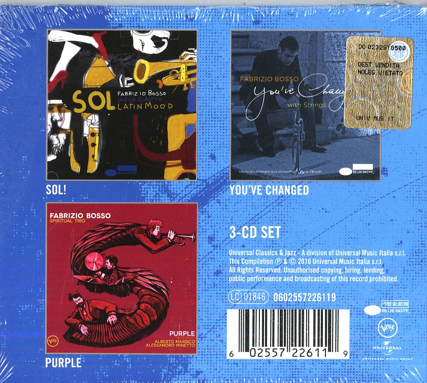Il tuo cd di / your cd of : Bosso Fabrizio - 3 Essential Albums Cd 0602557226119 sarà spedito e consegnato in 24/48h in Italia 48/72 in Europa / will be shipped and delivered in 24 / 48h in Italy 48/72 in Europe