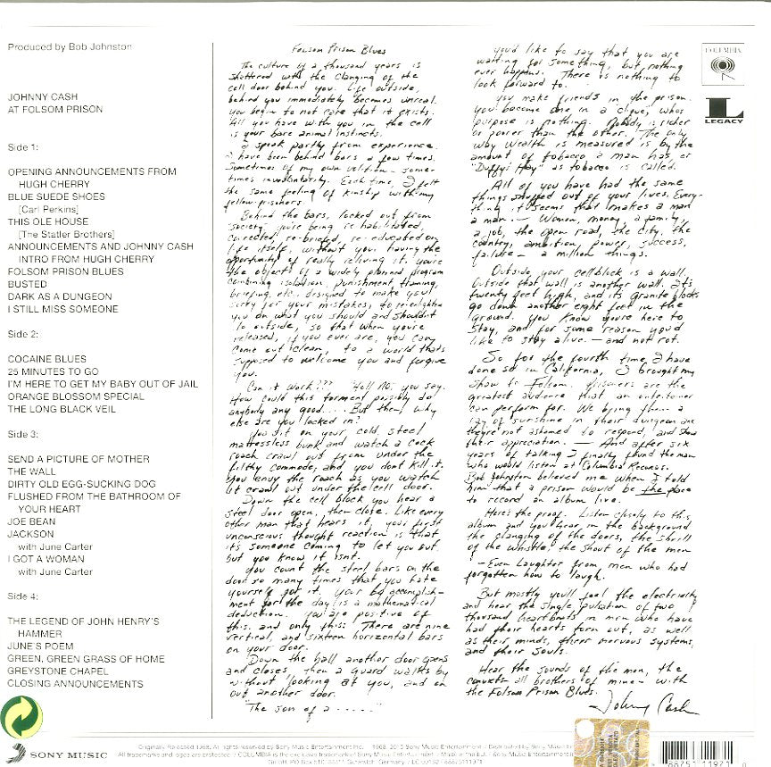 Cash Johnny - At Folsom Prison (Legacy Edt.) Vinile LP - Vinyl record 0888751119710
