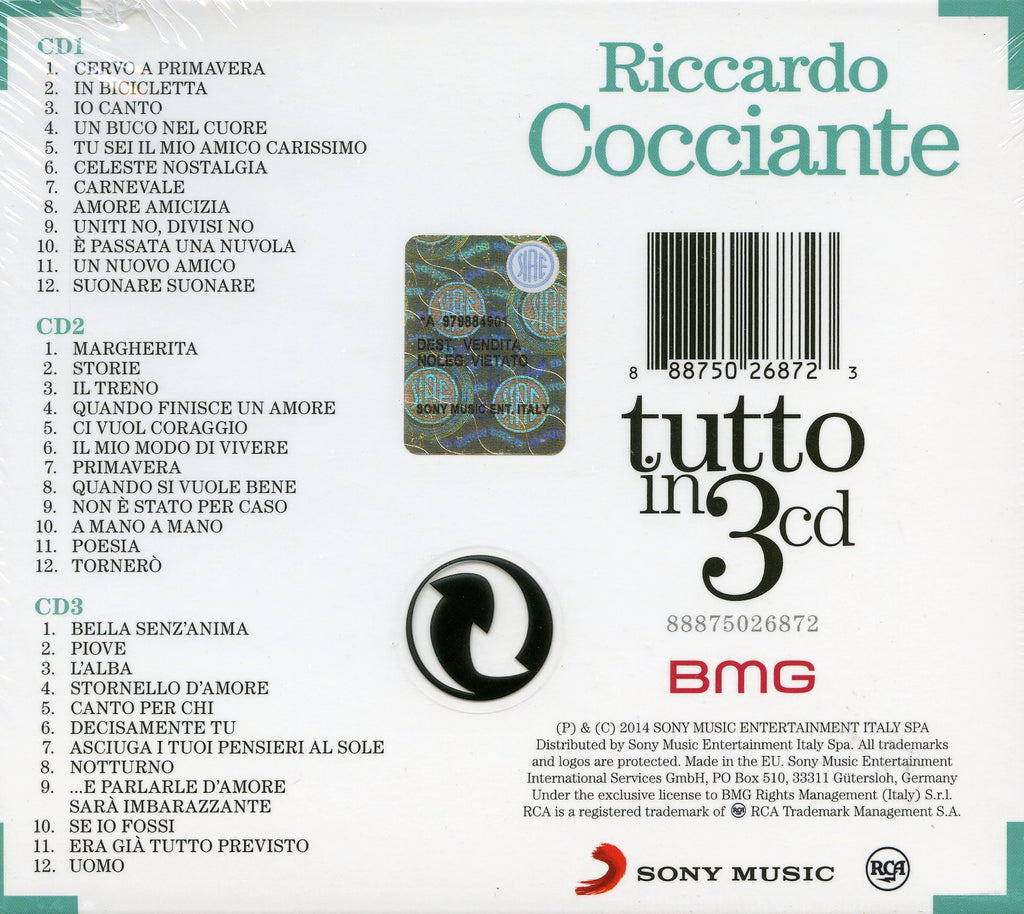 Il tuo cd di / your cd of : Cocciante Riccardo - Tutto In 3 Cd (Box) Cd 0888750268723 sarà spedito e consegnato in 24/48h in Italia 48/72 in Europa / will be shipped and delivered in 24 / 48h in Italy 48/72 in Europe