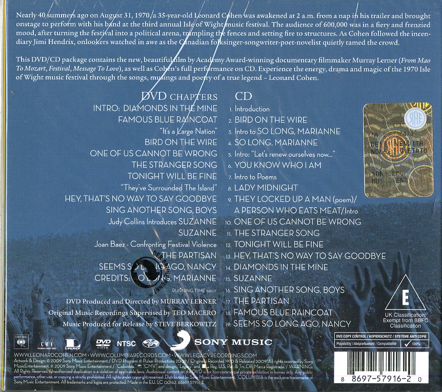 Il tuo cd di / your cd of : Cohen Leonard - Live At The Isle Of Wight 1970 Cd 0886975791620 sarà spedito e consegnato in 24/48h in Italia 48/72 in Europa / will be shipped and delivered in 24 / 48h in Italy 48/72 in Europe
