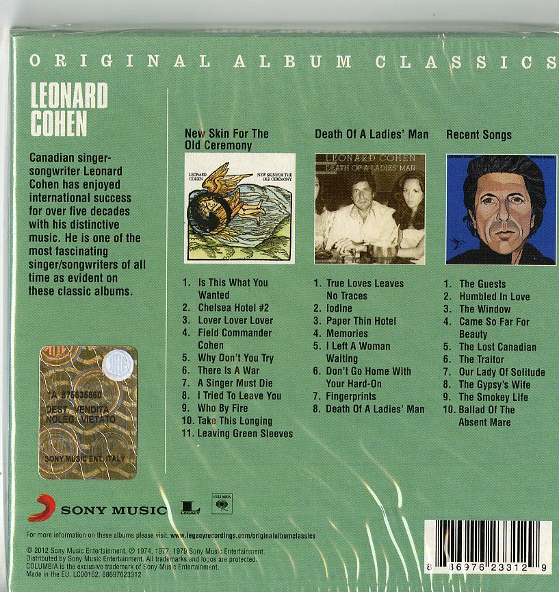 Il tuo cd di / your cd of : Cohen Leonard - Original Album Classics (Box 3 Cd) Cd 0886976233129 sarà spedito e consegnato in 24/48h in Italia 48/72 in Europa / will be shipped and delivered in 24 / 48h in Italy 48/72 in Europe