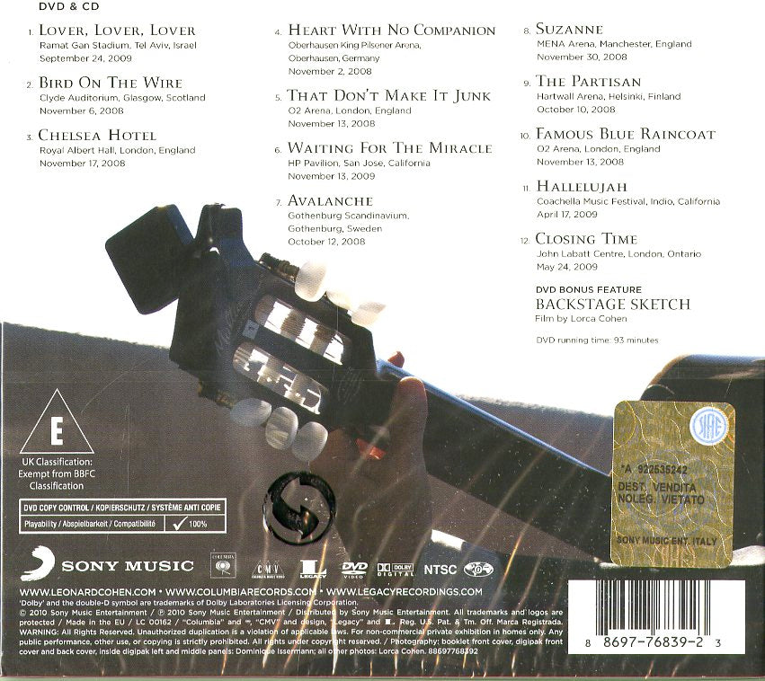 Il tuo cd di / your cd of : Cohen Leonard - Songs From The Road(Cd+Dvd) Cd 0886977683923 sarà spedito e consegnato in 24/48h in Italia 48/72 in Europa / will be shipped and delivered in 24 / 48h in Italy 48/72 in Europe