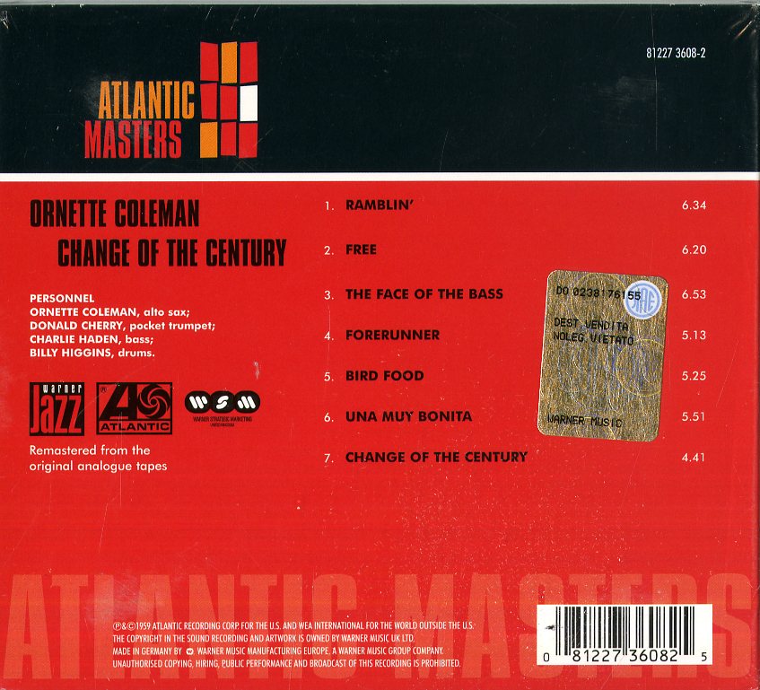 Il tuo cd di / your cd of : Coleman Ornette - Change Of The Century Cd 0081227360825 sarà spedito e consegnato in 24/48h in Italia 48/72 in Europa / will be shipped and delivered in 24 / 48h in Italy 48/72 in Europe