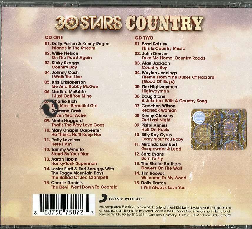 Il tuo cd di / your cd of : Compilation - 30 Stars: Country Cd 0888750750723 sarà spedito e consegnato in 24/48h in Italia 48/72 in Europa / will be shipped and delivered in 24 / 48h in Italy 48/72 in Europe
