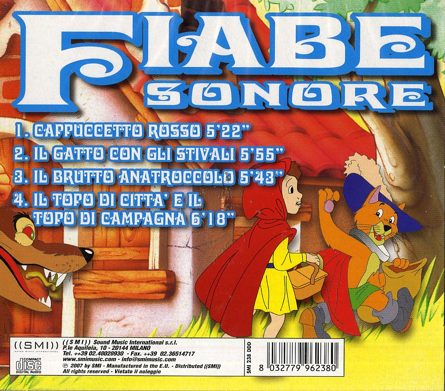 Il tuo cd di / your cd of : Compilation - Fiabe Sonore (Cappuccetto Rosso,Il Brutto Anatroccolo,Il Topo Di Citta..) Cd 8032779962380 sarà spedito e consegnato in 24/48h in Italia 48/72 in Europa / will be shipped and delivered in 24 / 48h in Italy 48/72 in Europe