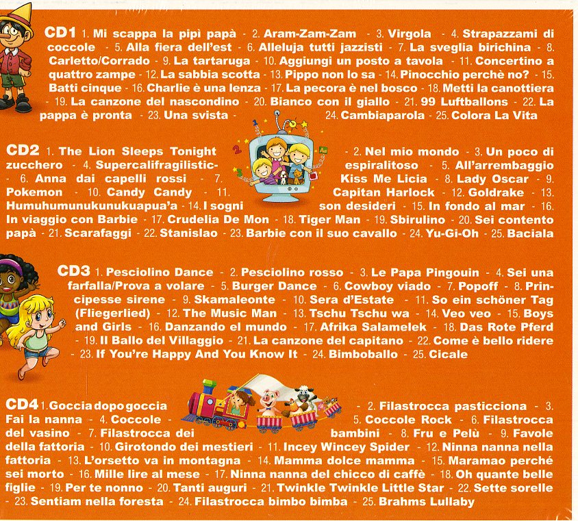 Il tuo cd di / your cd of : Compilation - Le 100 Canzoni Vol.2 Piu Belle Per Bambini (Box4Cd) Cd 8028980642623 sarà spedito e consegnato in 24/48h in Italia 48/72 in Europa / will be shipped and delivered in 24 / 48h in Italy 48/72 in Europe