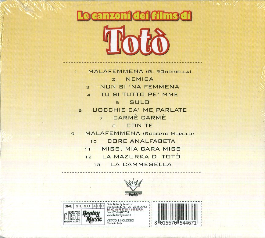 Compilation - Le Canzoni Dei Film Di Toto' CD 8015670544671