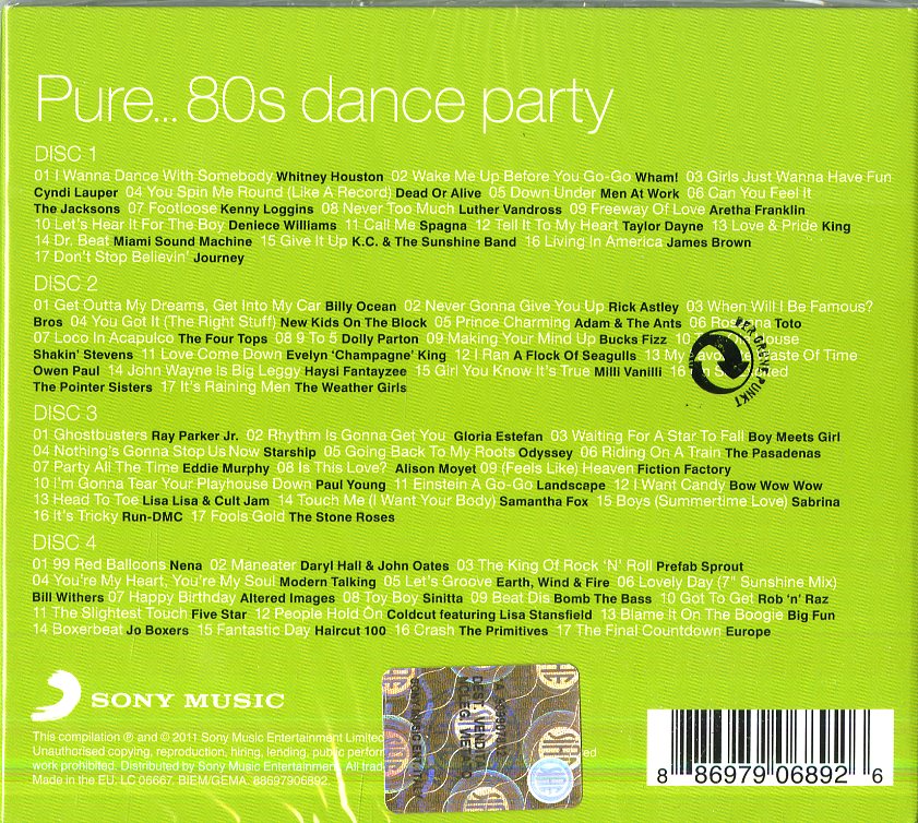 Il tuo cd di / your cd of : Compilation - Pure...80'S Dance Party (Box4Cd) Cd 0886979068926 sarà spedito e consegnato in 24/48h in Italia 48/72 in Europa / will be shipped and delivered in 24 / 48h in Italy 48/72 in Europe