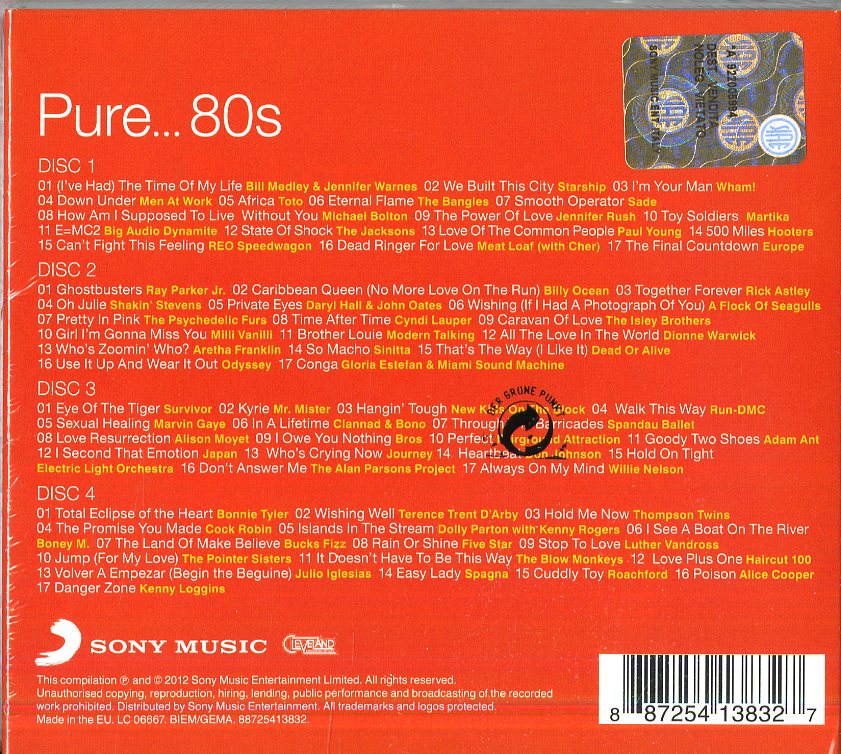 Il tuo cd di / your cd of : Compilation - Pure...'80S (Box4Cd) Cd 0887254138327 sarà spedito e consegnato in 24/48h in Italia 48/72 in Europa / will be shipped and delivered in 24 / 48h in Italy 48/72 in Europe