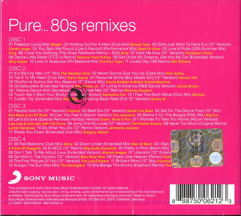 Il tuo cd di / your cd of : Compilation - Pure... 80S Remixes (Box4Cd) Cd 0888750062123 sarà spedito e consegnato in 24/48h in Italia 48/72 in Europa / will be shipped and delivered in 24 / 48h in Italy 48/72 in Europe