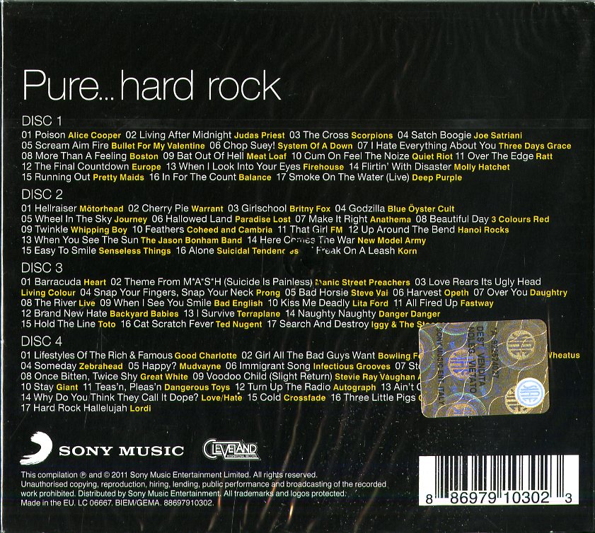 Il tuo cd di / your cd of : Compilation - Pure...Hard Rock (Box4Cd) Cd 0886979103023 sarà spedito e consegnato in 24/48h in Italia 48/72 in Europa / will be shipped and delivered in 24 / 48h in Italy 48/72 in Europe