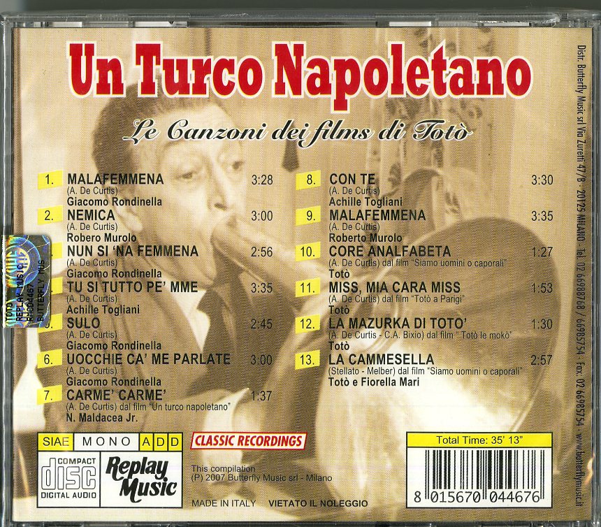 Compilation - Un Turco Napoletano - Le Canzoni Dei Films Di Toto' CD 8015670044676