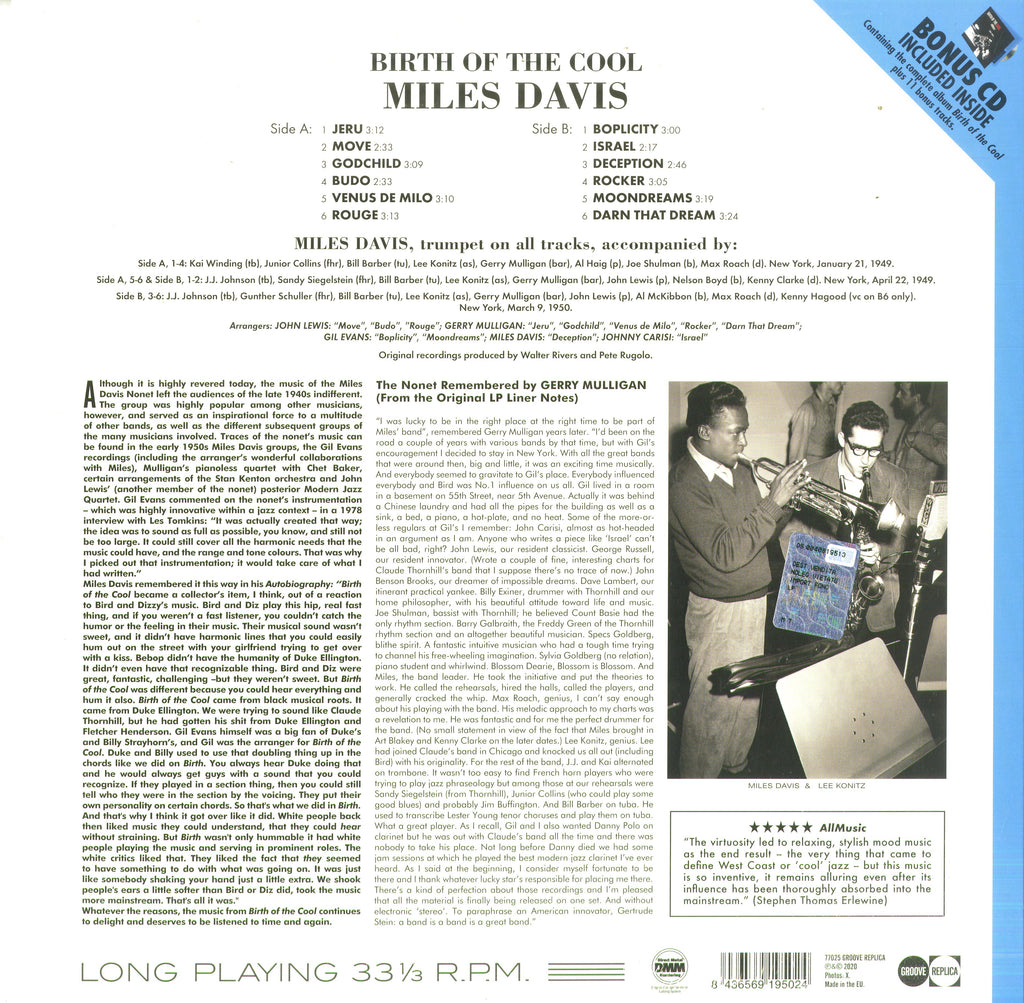 Il tuo Vinile LP di / Your Vinyl LP's :Davis Miles - Birth Of The Cool (180 Gr. Lp + Cd) Lp 8436569195024 sarà spedito e consegnato in 24/48h in Italia 48/72 in Europa / will be shipped and delivered in 24 / 48h in Italy 48/72 in Europe