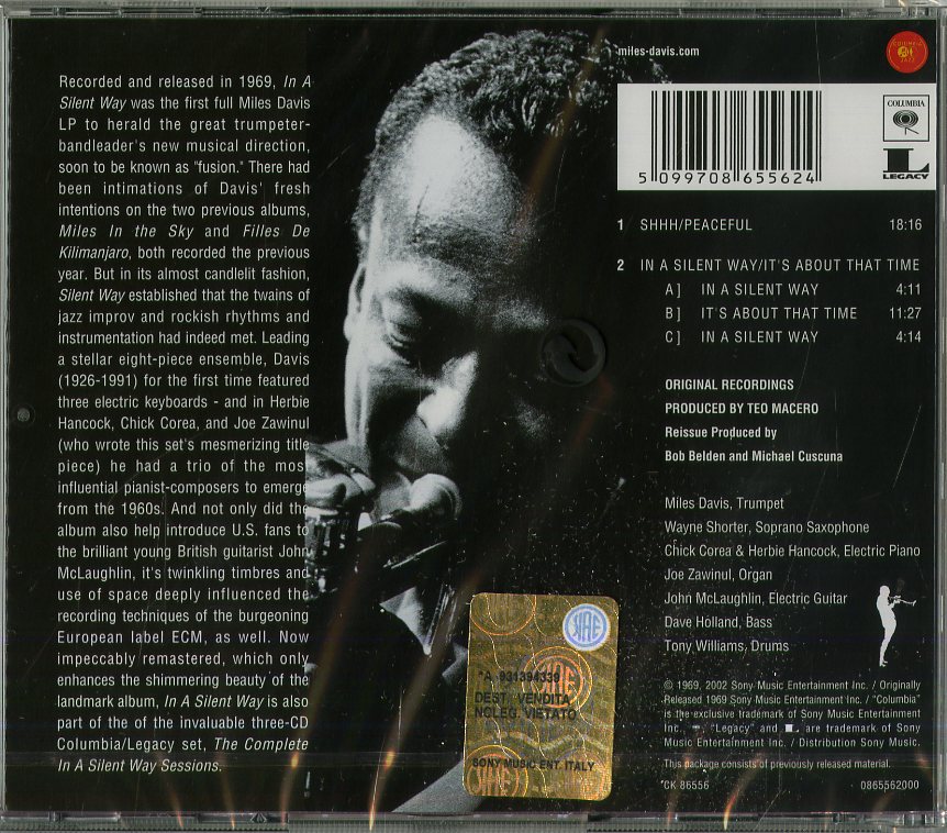 Il tuo cd di / your cd of : Davis Miles - In A Silent Way Cd 5099708655624 sarà spedito e consegnato in 24/48h in Italia 48/72 in Europa / will be shipped and delivered in 24 / 48h in Italy 48/72 in Europe