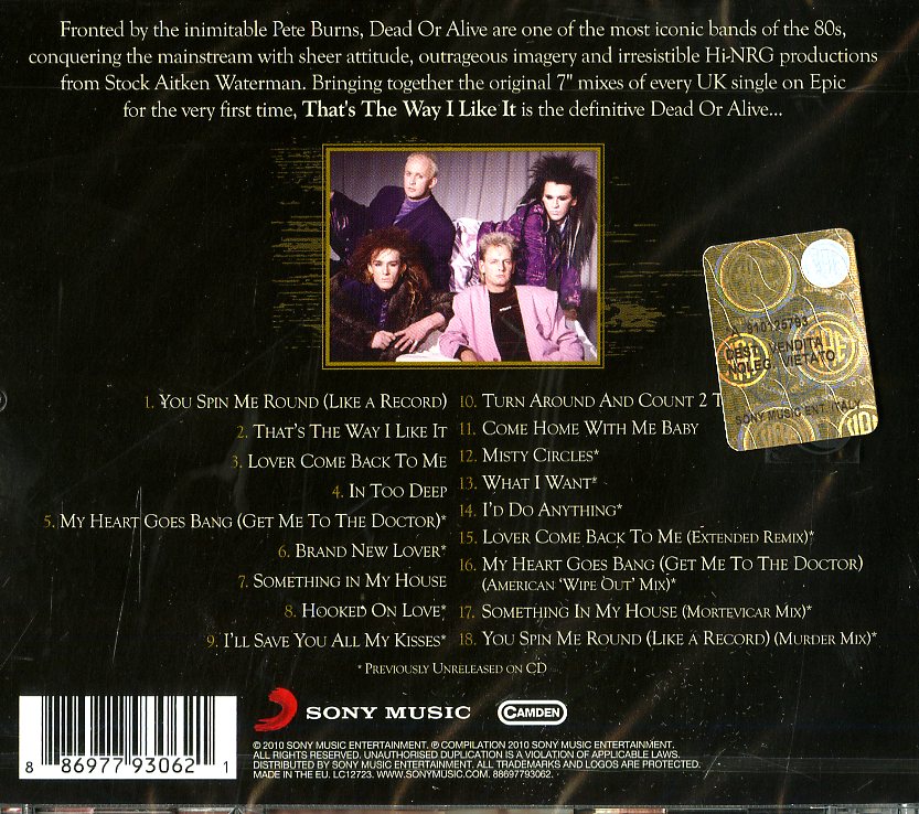 Il tuo cd di / your cd of : Dead Or Alive - That'S The Way I Like It: The Best Of De Cd 0886977930621 sarà spedito e consegnato in 24/48h in Italia 48/72 in Europa / will be shipped and delivered in 24 / 48h in Italy 48/72 in Europe