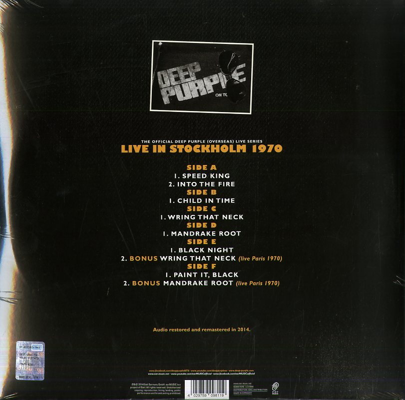 Il tuo Vinile LP di / Your Vinyl LP's :Deep Purple - Stockholm 1970 Lp 4029759098119 sarà spedito e consegnato in 24/48h in Italia 48/72 in Europa / will be shipped and delivered in 24 / 48h in Italy 48/72 in Europe