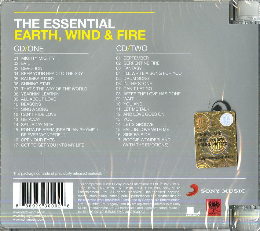 Il tuo cd di / your cd of : Earth Wind And Fire - The Essential Earth Wind And Fire Cd 0886979300026 sarà spedito e consegnato in 24/48h in Italia 48/72 in Europa / will be shipped and delivered in 24 / 48h in Italy 48/72 in Europe