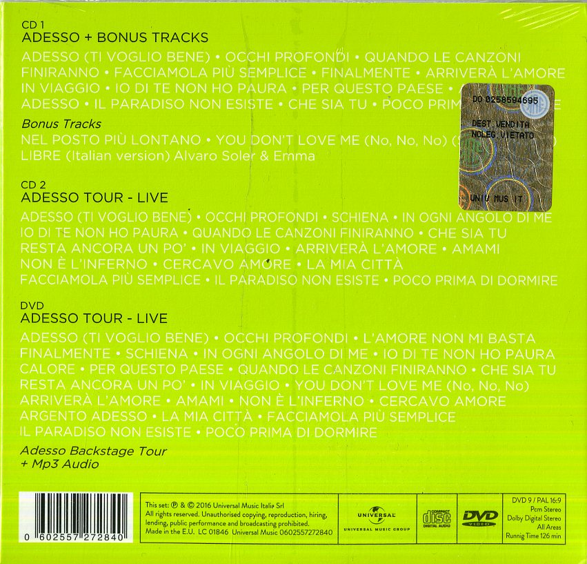 Il tuo cd di / your cd of : Emma - Adesso (Tour Edt.2Cd+Dvd) Cd 0602557272840 sarà spedito e consegnato in 24/48h in Italia 48/72 in Europa / will be shipped and delivered in 24 / 48h in Italy 48/72 in Europe