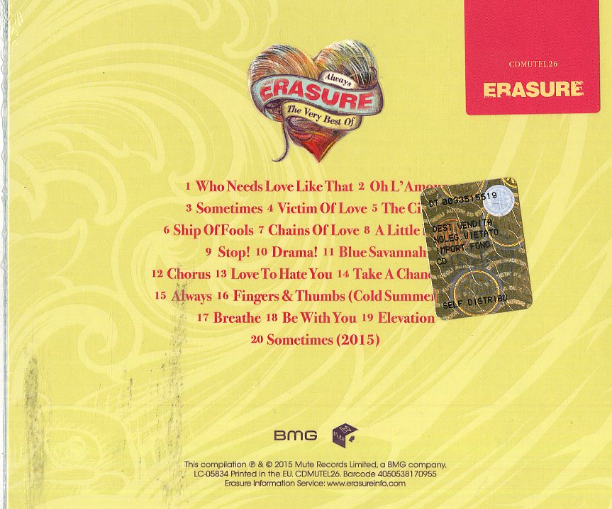 Il tuo cd di / your cd of : Erasure - Always The Very Best Of Cd 4050538170955 sarà spedito e consegnato in 24/48h in Italia 48/72 in Europa / will be shipped and delivered in 24 / 48h in Italy 48/72 in Europe