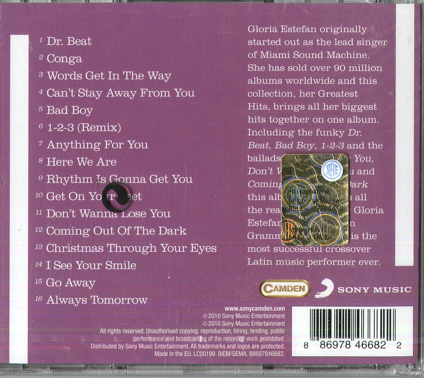 Il tuo cd di / your cd of : Estefan Gloria - Greatest Hits Cd 0886978466822 sarà spedito e consegnato in 24/48h in Italia 48/72 in Europa / will be shipped and delivered in 24 / 48h in Italy 48/72 in Europe