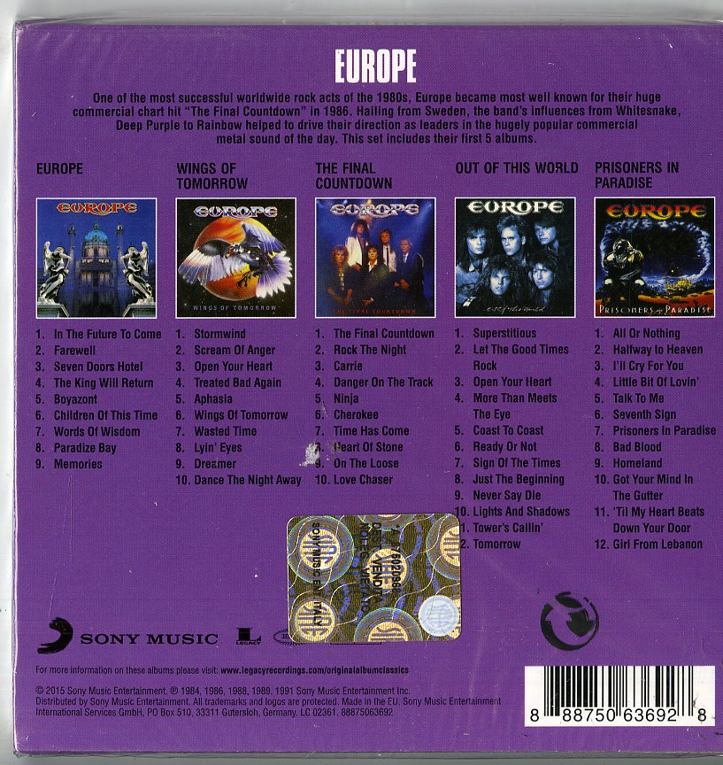 Il tuo cd di / your cd of : Europe - Original Album Classics (Box 5 Cd) Cd 0888750636928 sarà spedito e consegnato in 24/48h in Italia 48/72 in Europa / will be shipped and delivered in 24 / 48h in Italy 48/72 in Europe