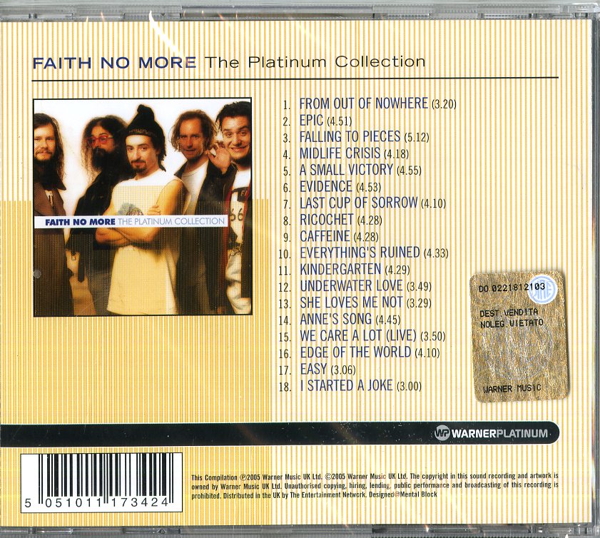Il tuo cd di / your cd of : Faith No More - Platinum Collection Cd 5051011173424 sarà spedito e consegnato in 24/48h in Italia 48/72 in Europa / will be shipped and delivered in 24 / 48h in Italy 48/72 in Europe