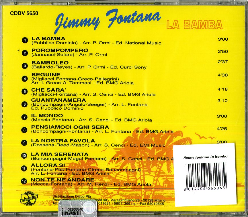 Il tuo cd di / your cd of : Fontana Jimmy - La Bamba Cd 8014406565065 sarà spedito e consegnato in 24/48h in Italia 48/72 in Europa / will be shipped and delivered in 24 / 48h in Italy 48/72 in Europe