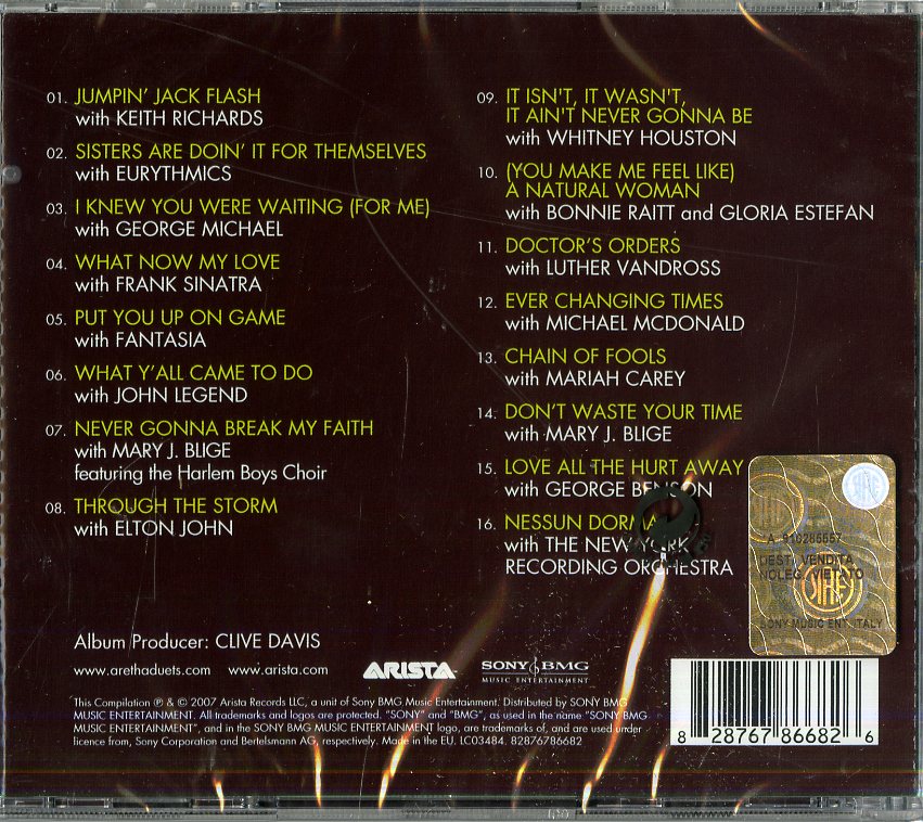 Il tuo cd di / your cd of : Franklin Aretha - Jewels In The Crown:All-Star Duets Cd 0828767866826 sarà spedito e consegnato in 24/48h in Italia 48/72 in Europa / will be shipped and delivered in 24 / 48h in Italy 48/72 in Europe