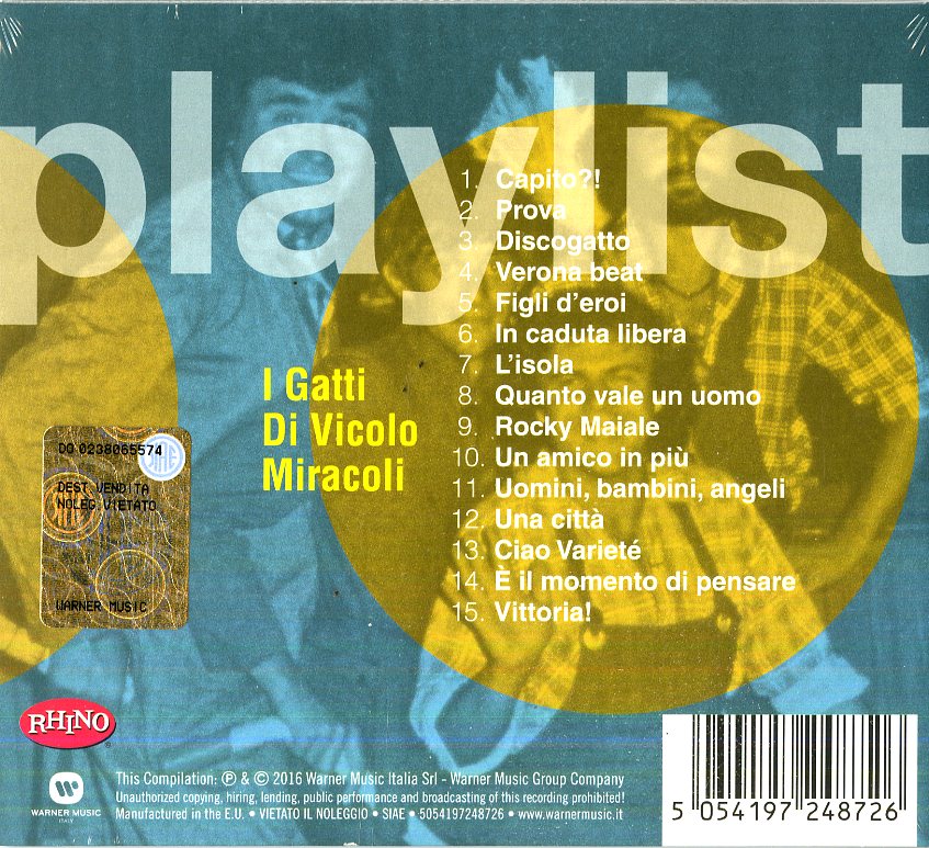 Il tuo cd di / your cd of : Gatti Di Vicolo Miracolo I - Playlist: I Gatti Di Vicolo Miracolo Cd 5054197248726 sarà spedito e consegnato in 24/48h in Italia 48/72 in Europa / will be shipped and delivered in 24 / 48h in Italy 48/72 in Europe