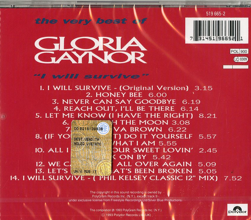Il tuo cd di / your cd of : Gaynor Gloria - I Will Survive-Best Cd 0731451966521 sarà spedito e consegnato in 24/48h in Italia 48/72 in Europa / will be shipped and delivered in 24 / 48h in Italy 48/72 in Europe