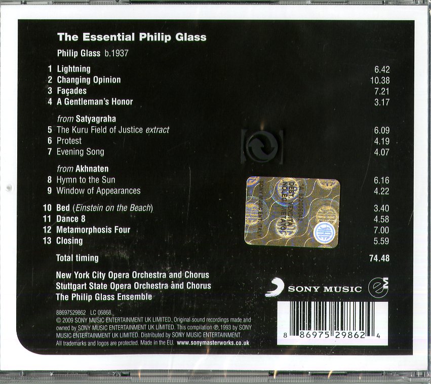 Il tuo cd di / your cd of : Glass Philip - The Essential Cd 0886975298624 sarà spedito e consegnato in 24/48h in Italia 48/72 in Europa / will be shipped and delivered in 24 / 48h in Italy 48/72 in Europe