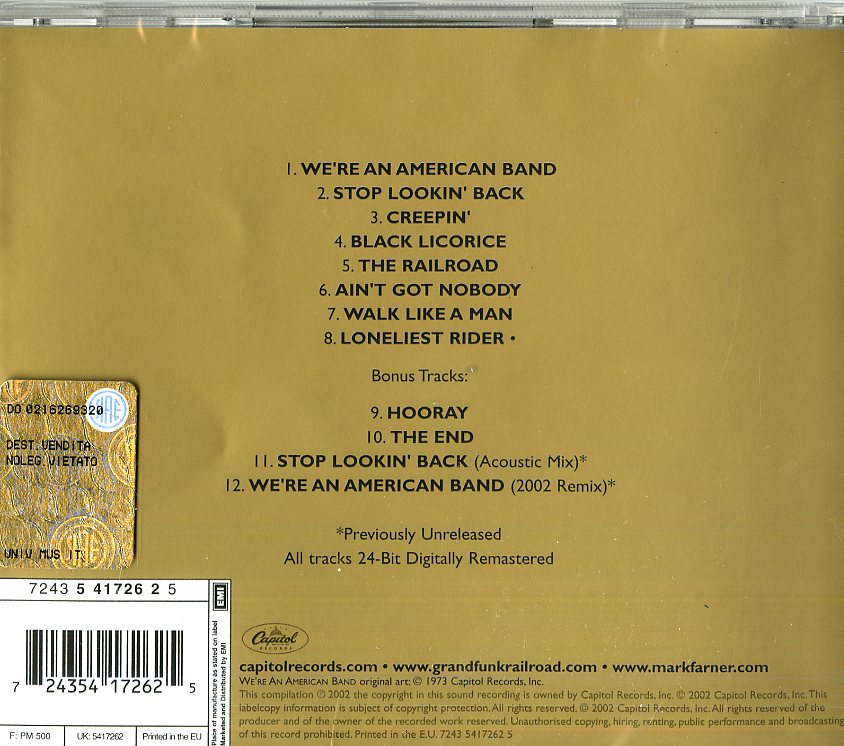Il tuo cd di / your cd of : Grand Funk Railroad - We'Re An American Band Cd 0724354172625 sarà spedito e consegnato in 24/48h in Italia 48/72 in Europa / will be shipped and delivered in 24 / 48h in Italy 48/72 in Europe