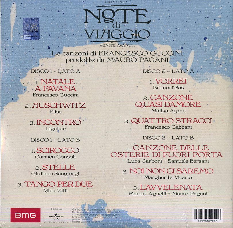 Il tuo Vinile LP di / Your Vinyl LP's :Guccini Francesco, Pagani Mauro( Canzoni Interpretate Dalle Grandi Voci Italiane) - Note Di Viaggio Capitolo 1 Venite Avanti... Lp 0602508428296 sarà spedito e consegnato in 24/48h in Italia 48/72 in Europa / will be shipped and delivered in 24 / 48h in Italy 48/72 in Europe
