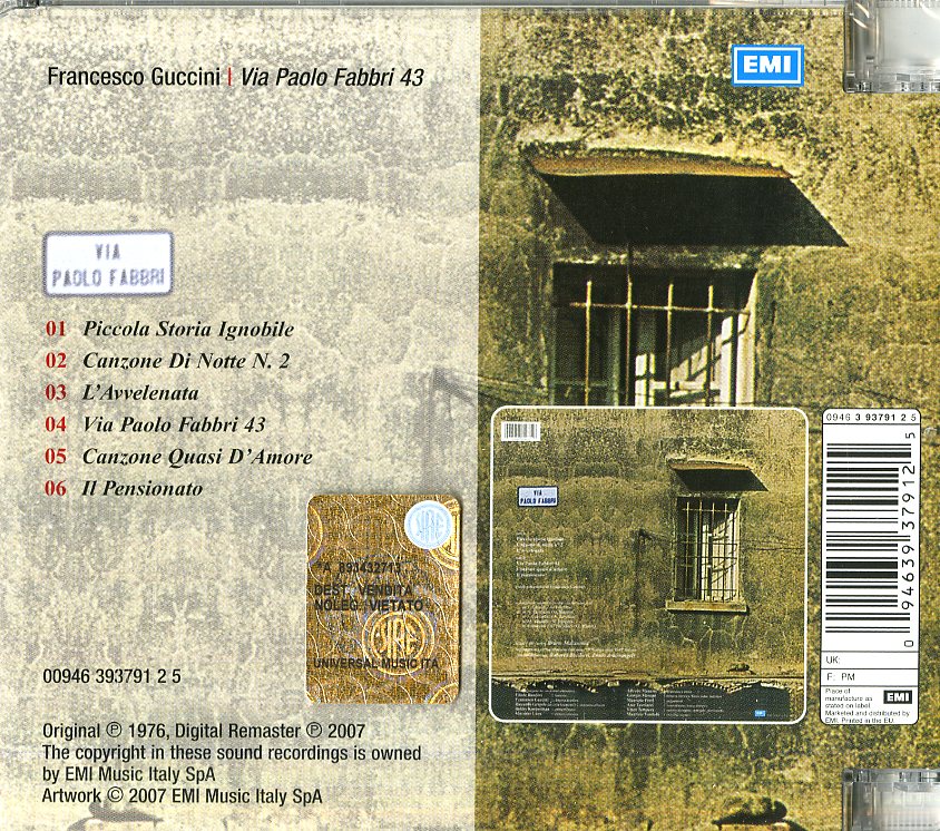 Il tuo cd di / your cd of : Guccini Francesco - Via Paolo Fabbri 43(Remastered) Cd 0094639379125 sarà spedito e consegnato in 24/48h in Italia 48/72 in Europa / will be shipped and delivered in 24 / 48h in Italy 48/72 in Europe