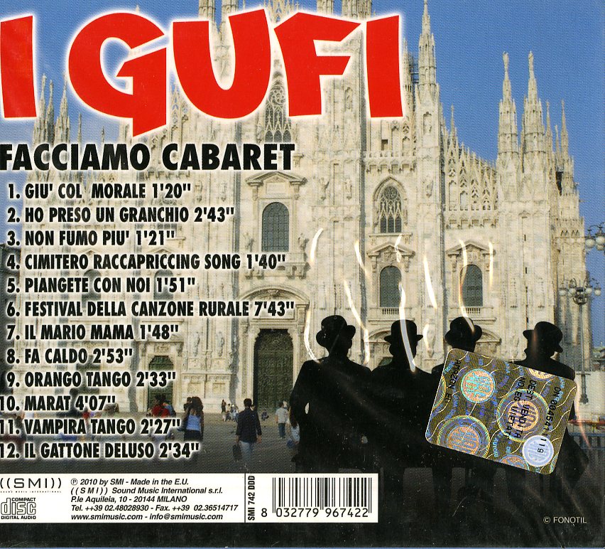 Il tuo cd di / your cd of : Gufi I - Facciamo Cabaret Cd 8032779967422 sarà spedito e consegnato in 24/48h in Italia 48/72 in Europa / will be shipped and delivered in 24 / 48h in Italy 48/72 in Europe