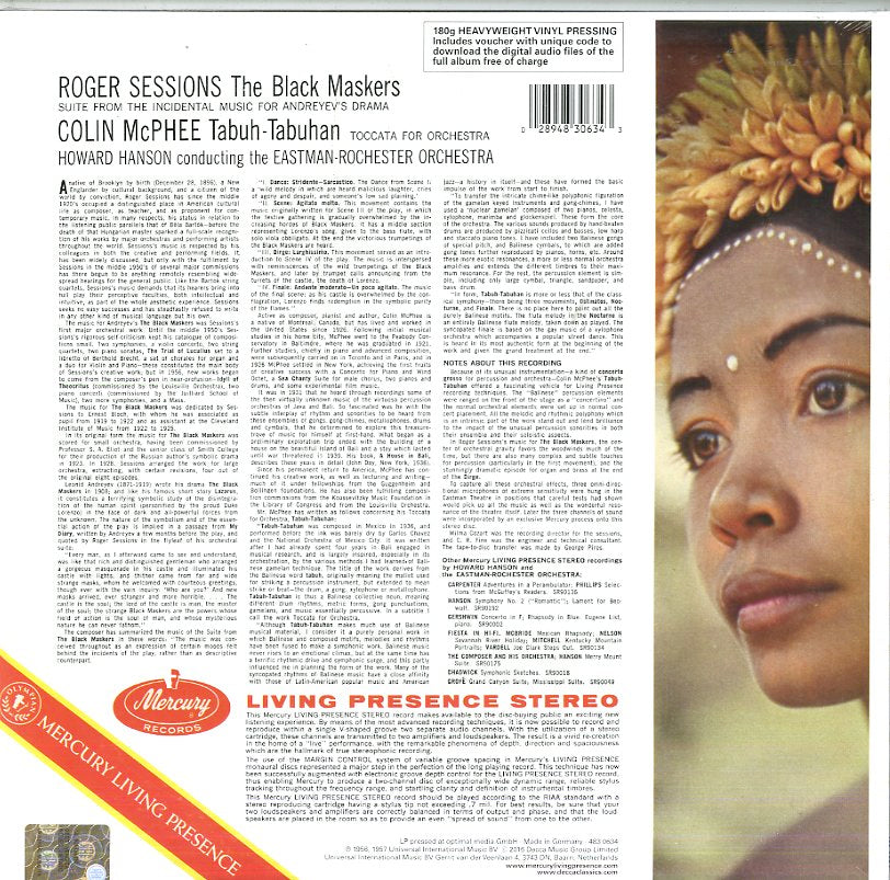 Il tuo Vinile LP di / Your Vinyl LP's :Hanson Howard (Direttore) - The Black Maskes,Tabuh-Tabuhan (2016)(Lp 180Gr) Lp 0028948306343 sarà spedito e consegnato in 24/48h in Italia 48/72 in Europa / will be shipped and delivered in 24 / 48h in Italy 48/72 in Europe