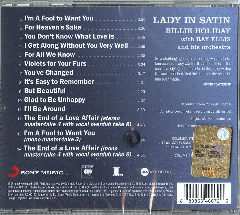 Il tuo cd di / your cd of : Holiday Billie - Lady In Satin Cd 0889853466726 sarà spedito e consegnato in 24/48h in Italia 48/72 in Europa / will be shipped and delivered in 24 / 48h in Italy 48/72 in Europe