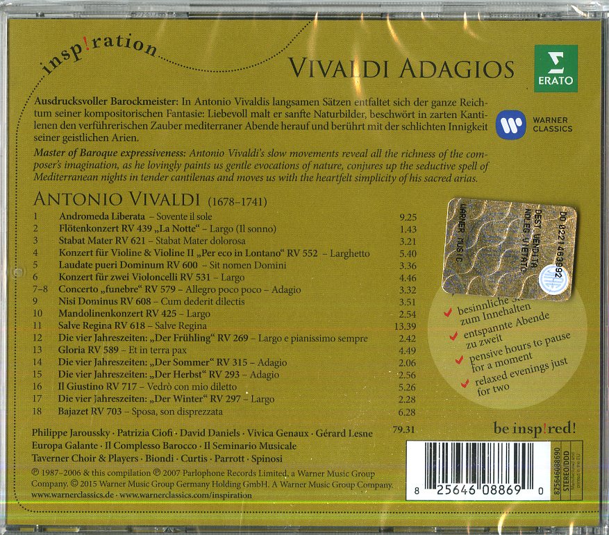 Il tuo cd di / your cd of : Jaroussky Philippe( Controtenore) - Adagios Cd 0825646088690 sarà spedito e consegnato in 24/48h in Italia 48/72 in Europa / will be shipped and delivered in 24 / 48h in Italy 48/72 in Europe