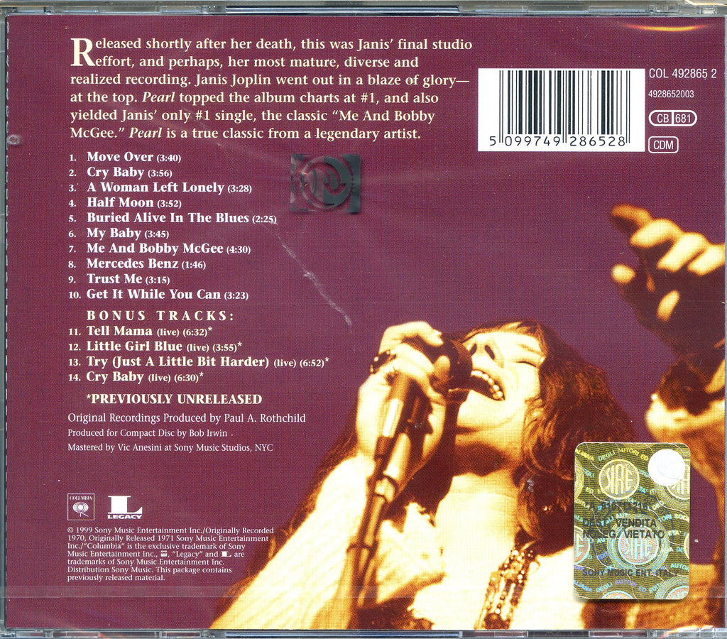 Il tuo cd di / your cd of : Joplin Janis - Pearl Cd 5099749286528 sarà spedito e consegnato in 24/48h in Italia 48/72 in Europa / will be shipped and delivered in 24 / 48h in Italy 48/72 in Europe