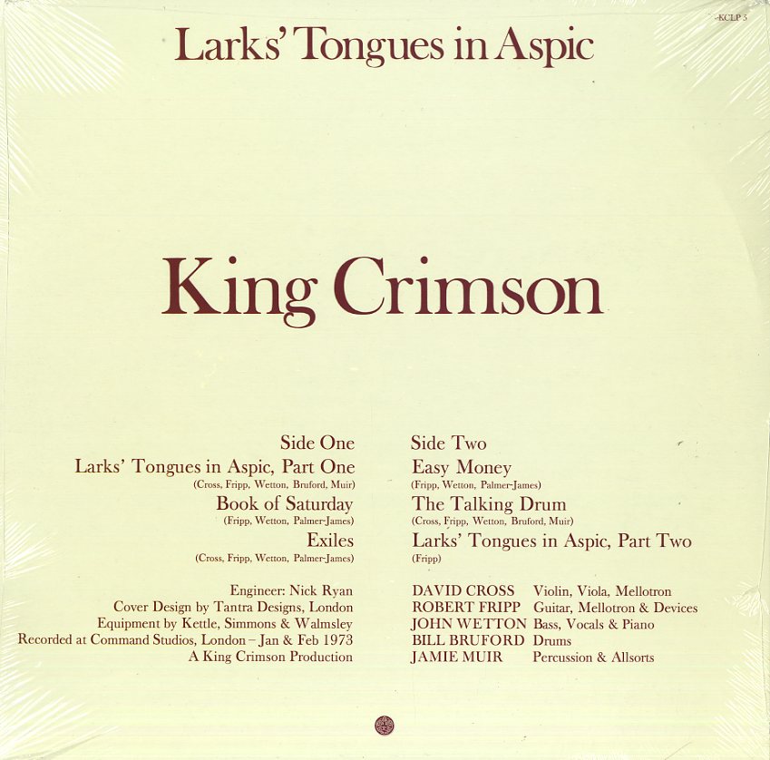 Il tuo Vinile LP di / Your Vinyl LP's :King Crimson - Larks Tongues In Aspic (200Gr) Lp 0633367910516 sarà spedito e consegnato in 24/48h in Italia 48/72 in Europa / will be shipped and delivered in 24 / 48h in Italy 48/72 in Europe