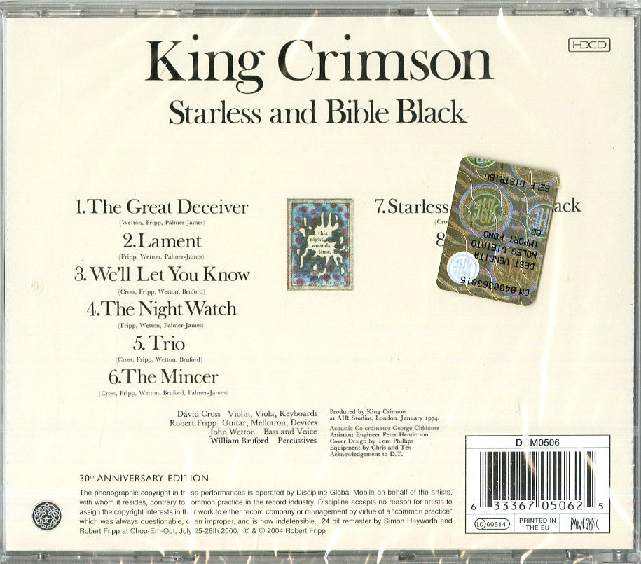 Il tuo cd di / your cd of : King Crimson - Starless And Bible Black Cd 0633367050625 sarà spedito e consegnato in 24/48h in Italia 48/72 in Europa / will be shipped and delivered in 24 / 48h in Italy 48/72 in Europe
