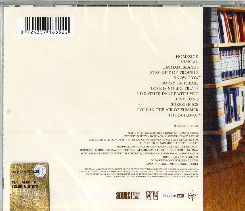 Il tuo cd di / your cd of : Kings Of Convenience - Riot On An Empty Street Cd 0724357166522 sarà spedito e consegnato in 24/48h in Italia 48/72 in Europa / will be shipped and delivered in 24 / 48h in Italy 48/72 in Europe