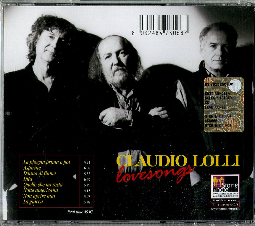 Il tuo cd di / your cd of : Lolli Claudio - Love Songs Cd 8032484730687 sarà spedito e consegnato in 24/48h in Italia 48/72 in Europa / will be shipped and delivered in 24 / 48h in Italy 48/72 in Europe