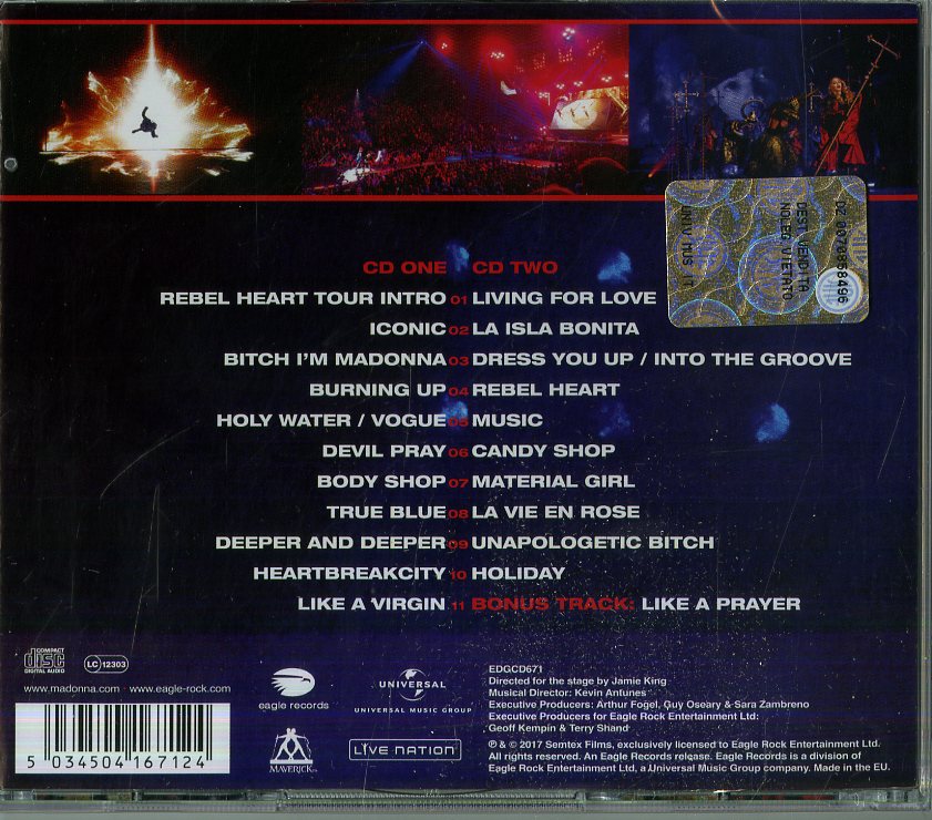 Il tuo cd di / your cd of : Madonna - Rebel Heart Tour Cd 5034504167124 sarà spedito e consegnato in 24/48h in Italia 48/72 in Europa / will be shipped and delivered in 24 / 48h in Italy 48/72 in Europe