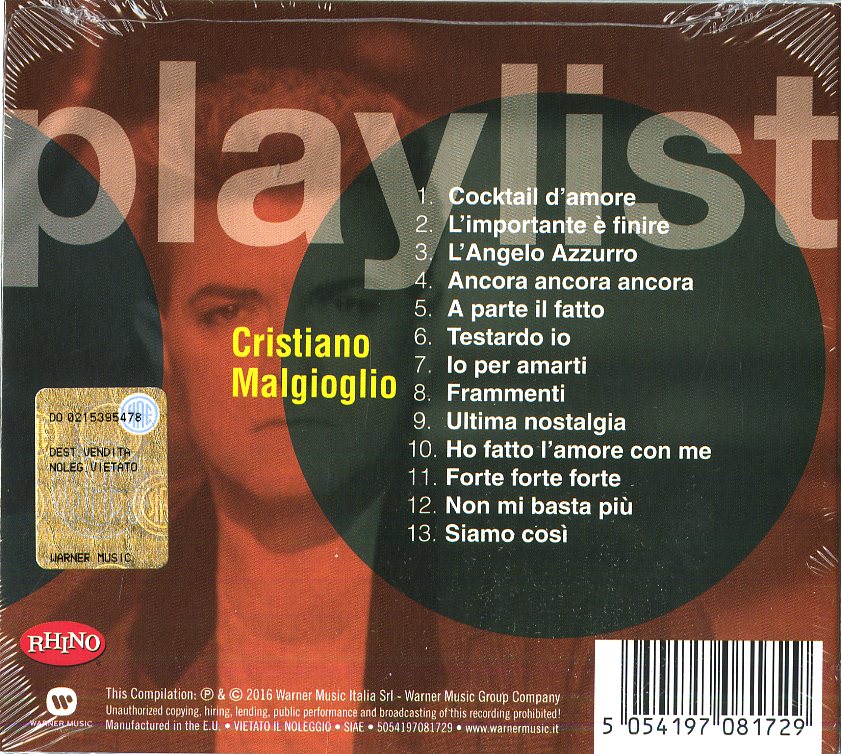 Malgioglio Cristiano - Playlist: Cristiano Malgioglio CD 5054197081729