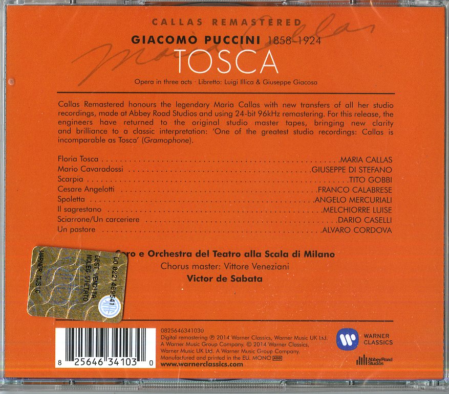 Il tuo cd di / your cd of : Maria Callas( Soprano), Giuseppe Di Stefano( Tenore), Tito Gobbi( Baritono) - Tosca (Opera Completa) Cd 0825646341030 sarà spedito e consegnato in 24/48h in Italia 48/72 in Europa / will be shipped and delivered in 24 / 48h in Italy 48/72 in Europe